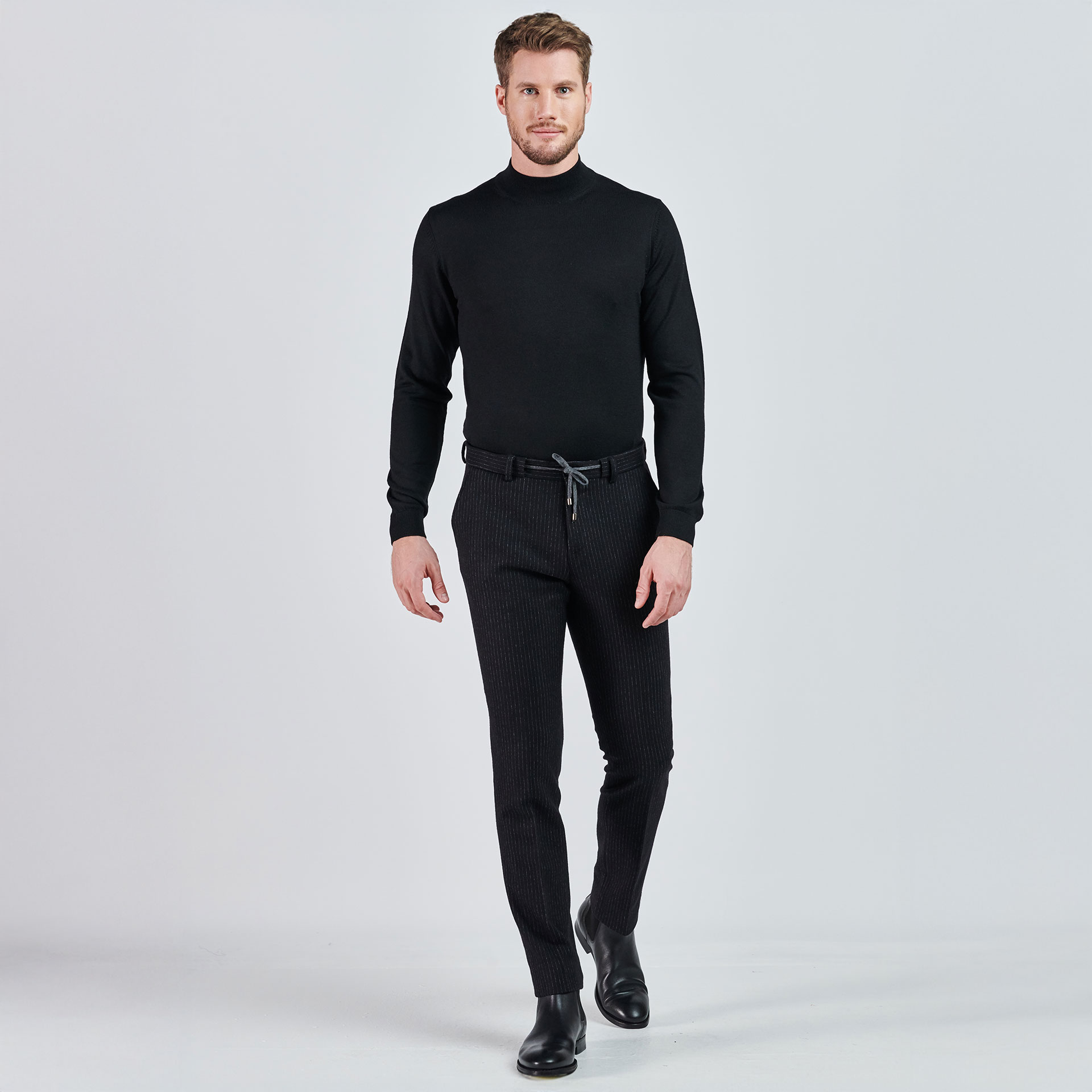 • Ürün Özellikleri : Normal bel, patletle gizlenen fermuar kapatmalı, boru paça, dört adet cepli, düğmeli kemer ipli.