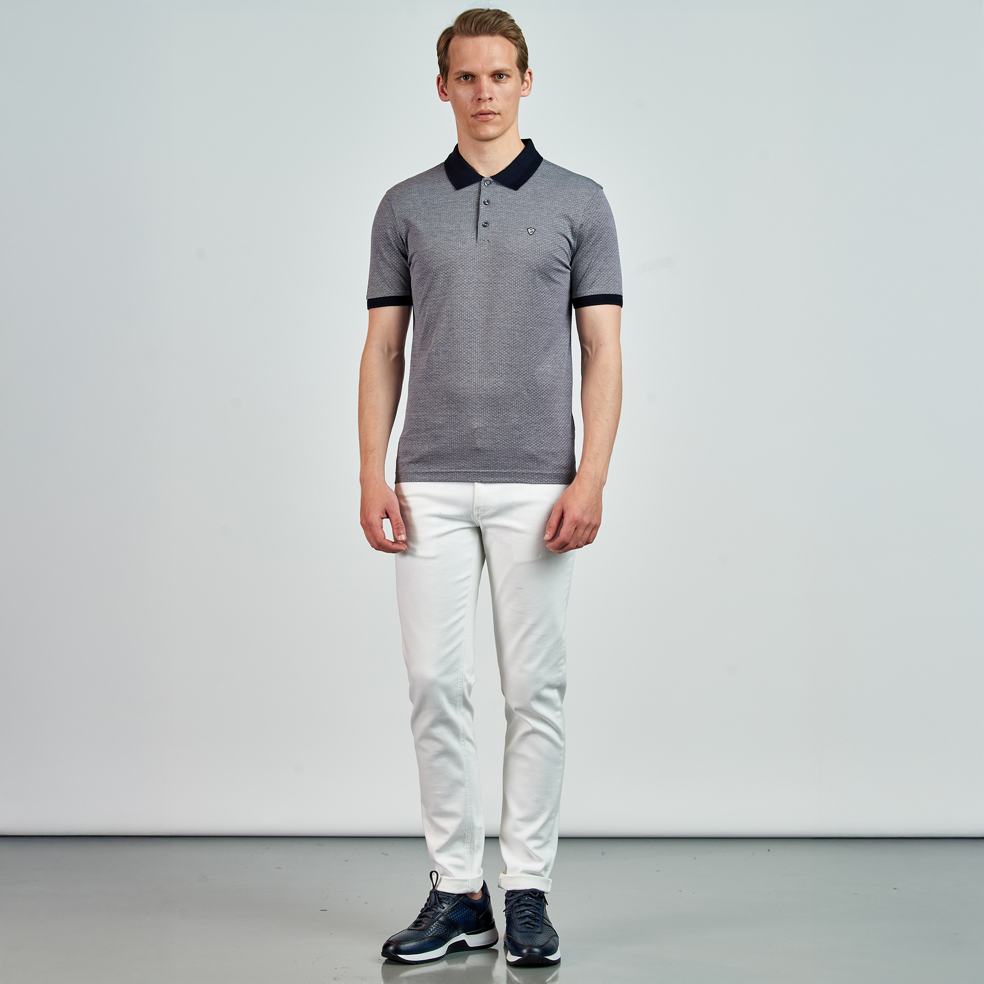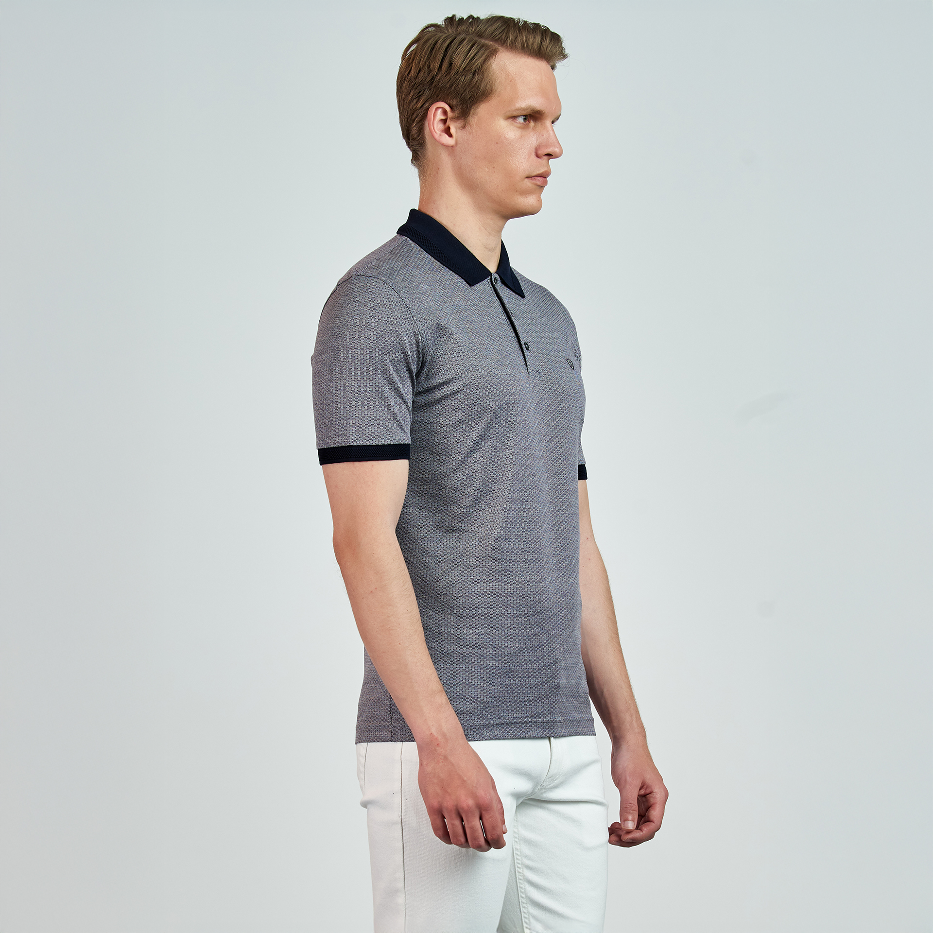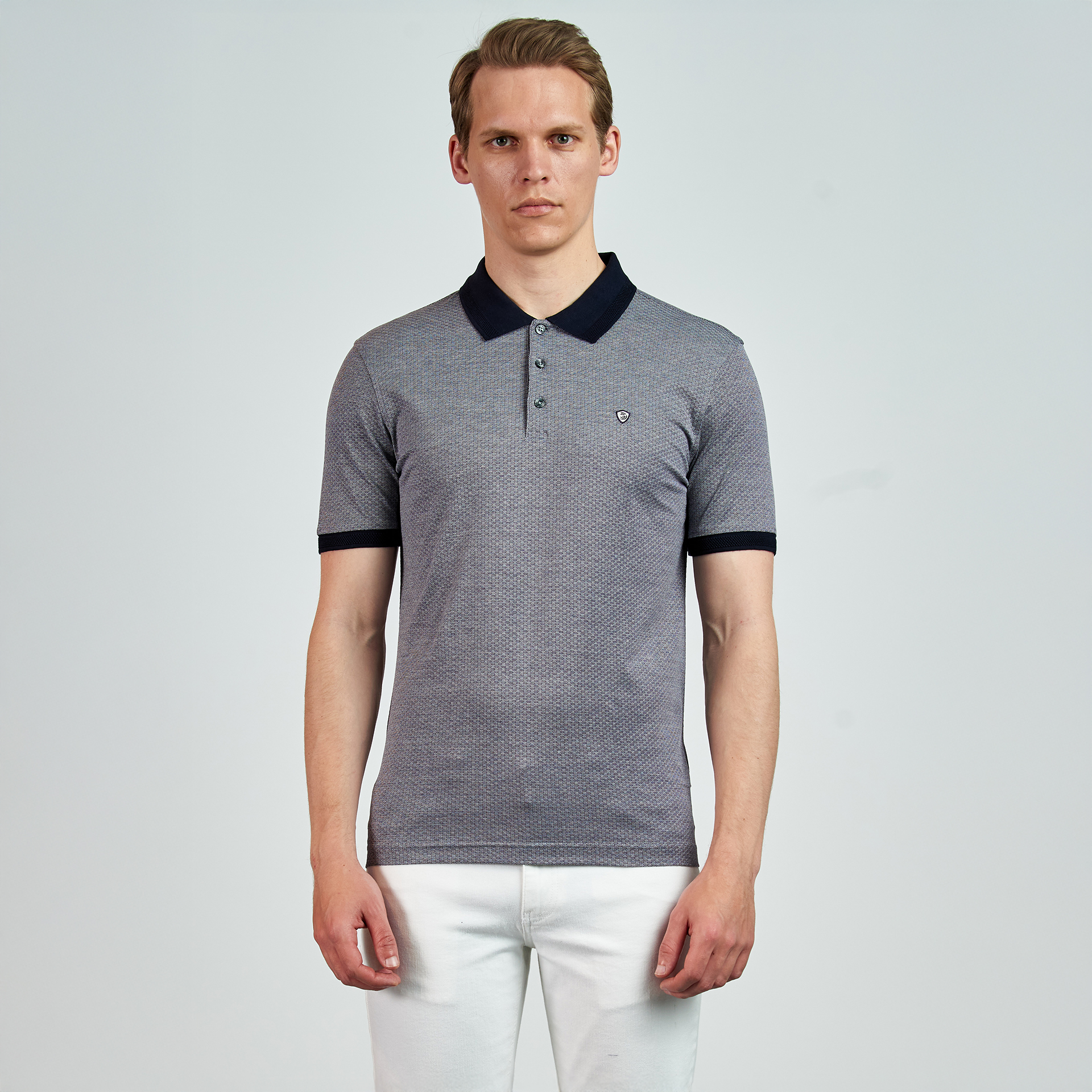 Polo yaka, düğme kapatmalı,renk ve logo nakış detaylı, T-shirt