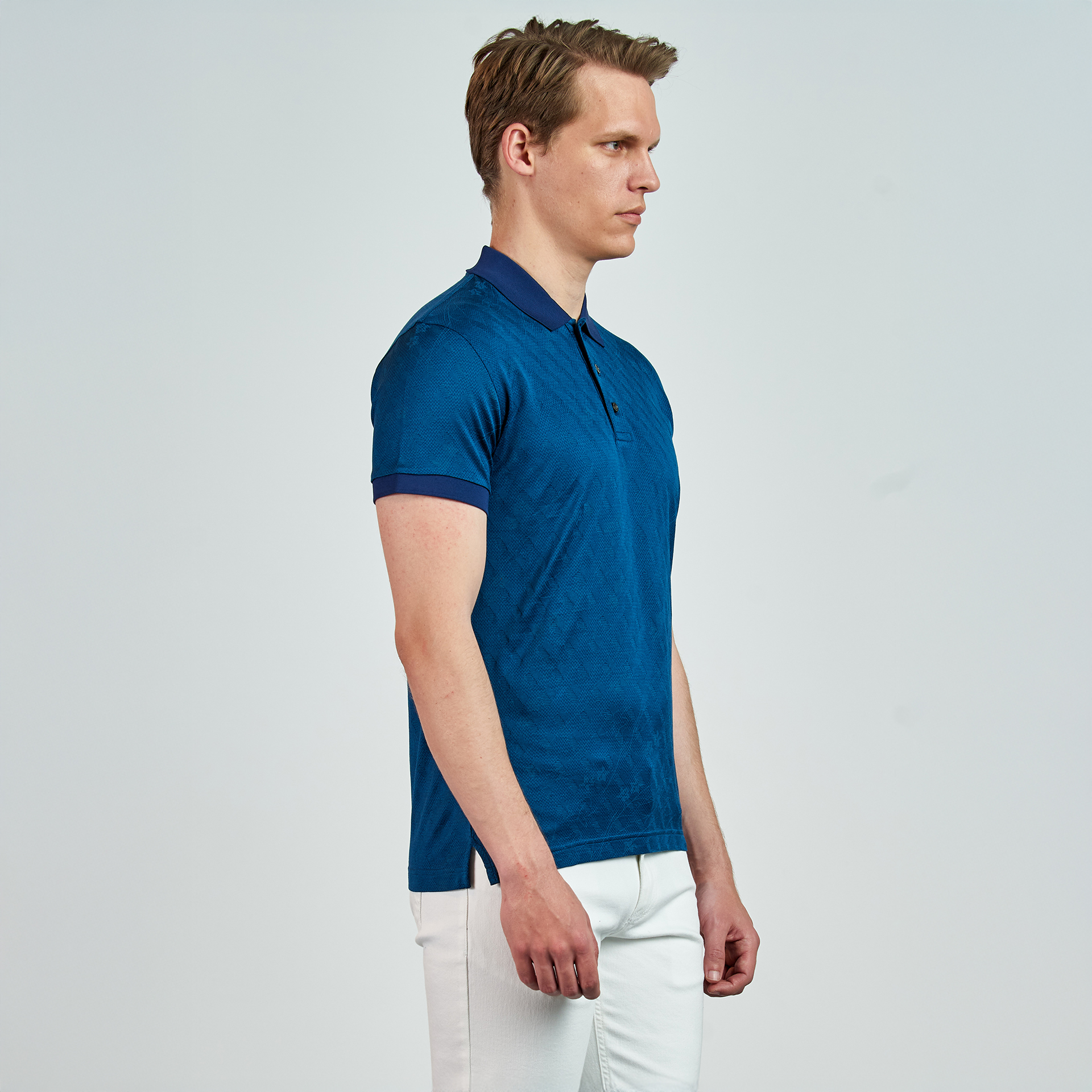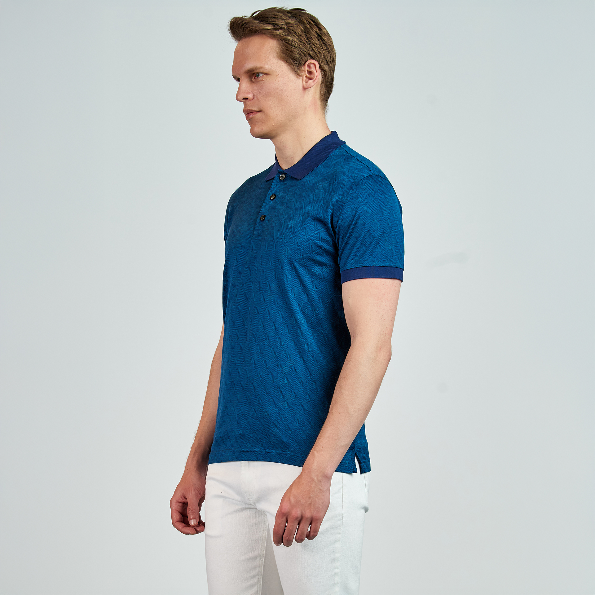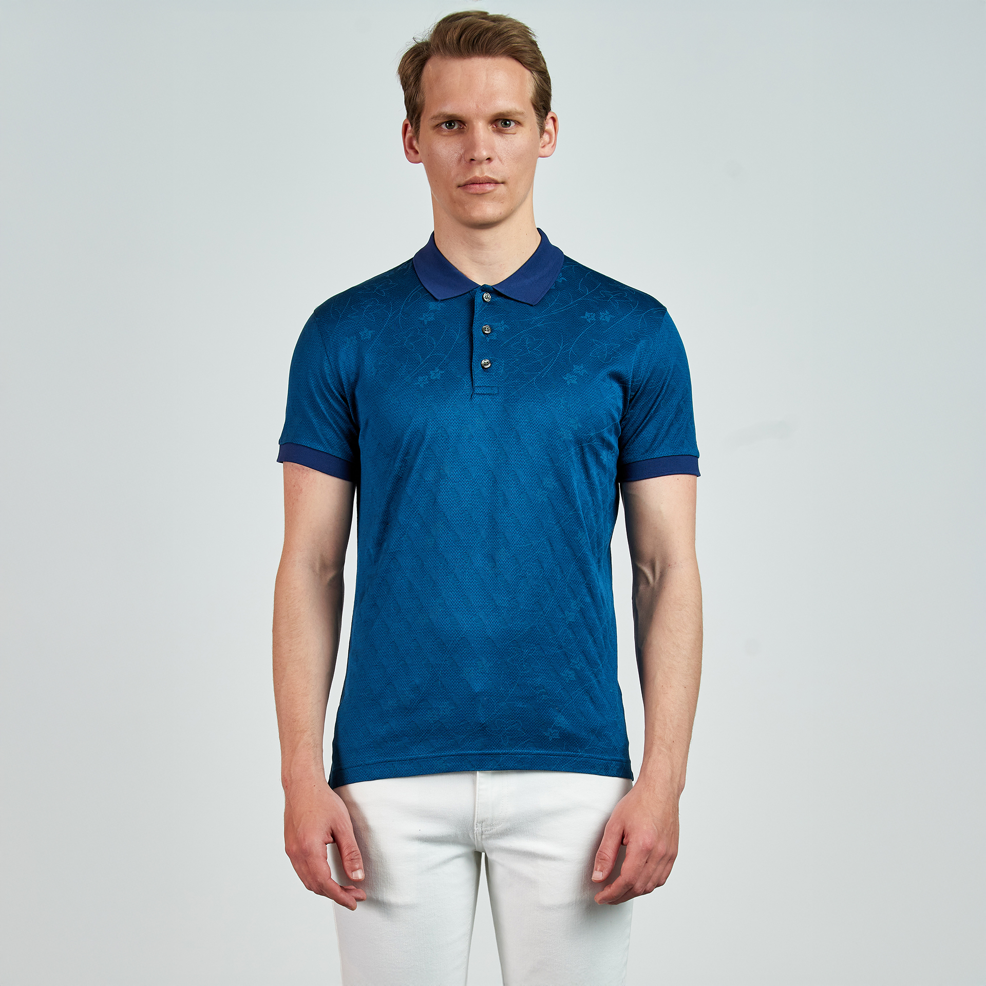 Polo yaka, düğme kapatmalı, çiçek desenli, renk detaylı, T-shirt
