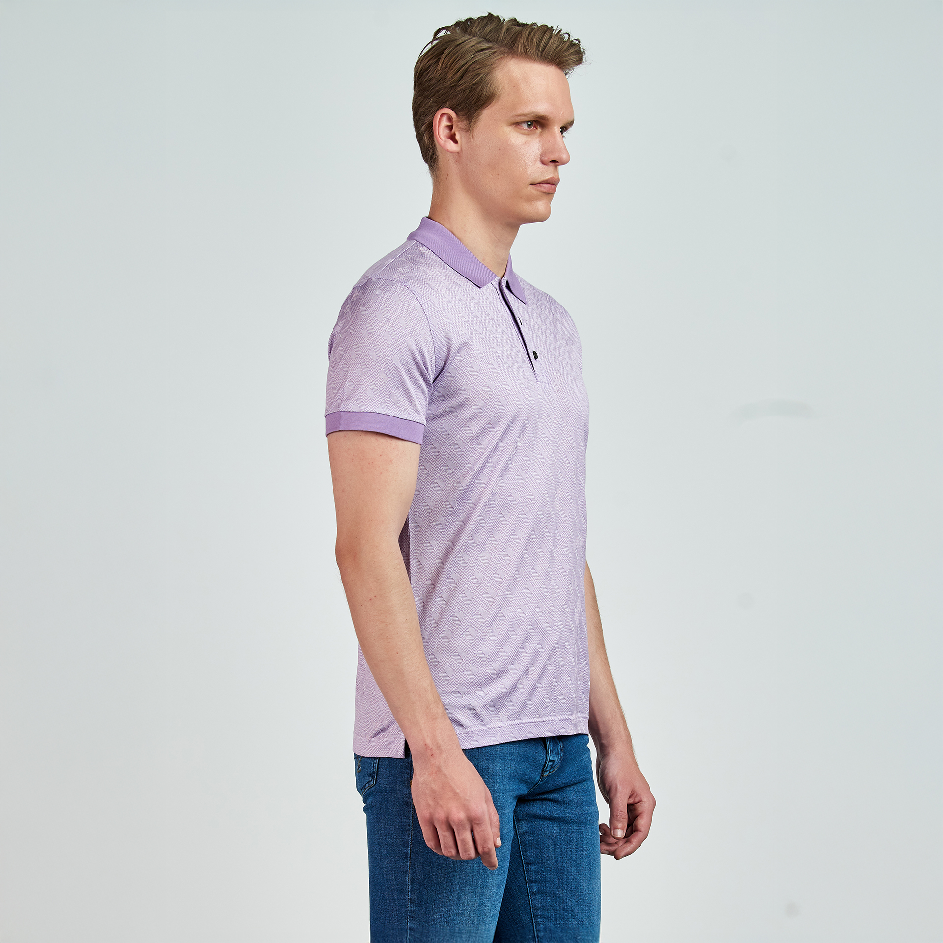 Polo yaka, düğme kapatmalı, çiçek desenli, renk detaylı, T-shirt