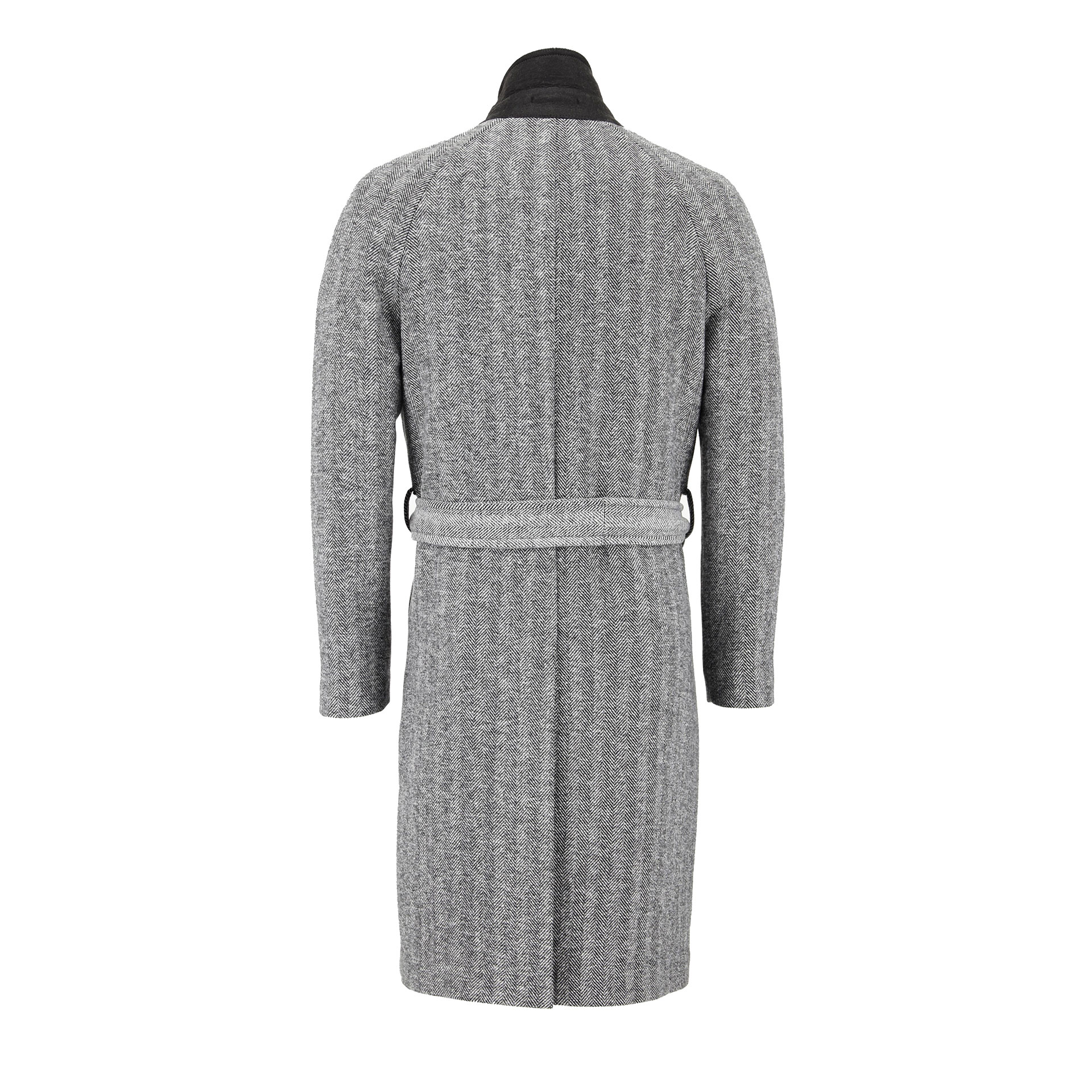 Kırlangıç yaka, kruvaze düğme kapatmalı, kemer detaylı, iki adet dış cepli.