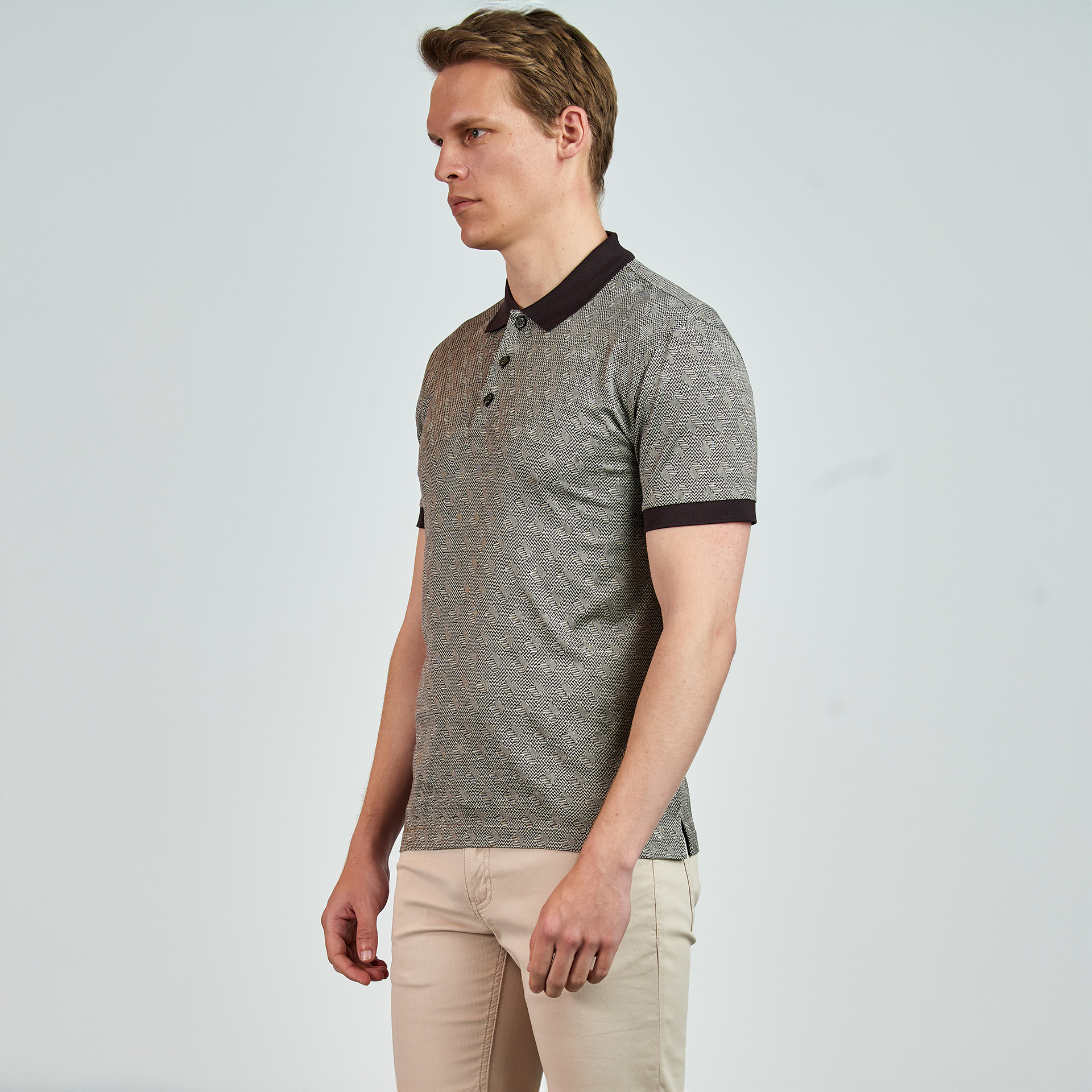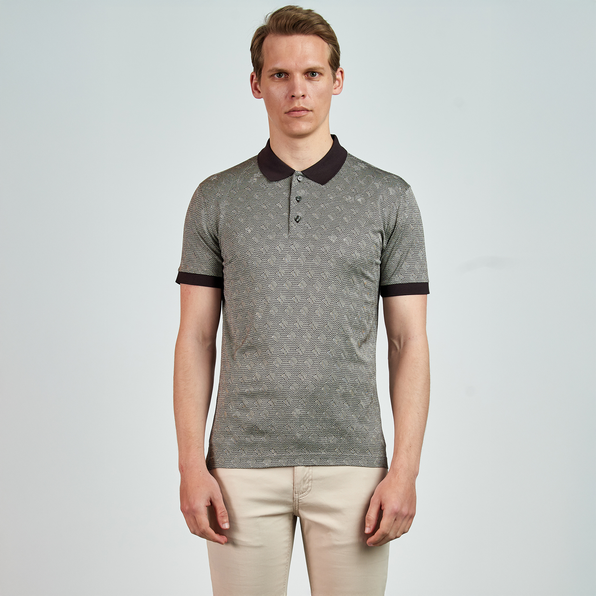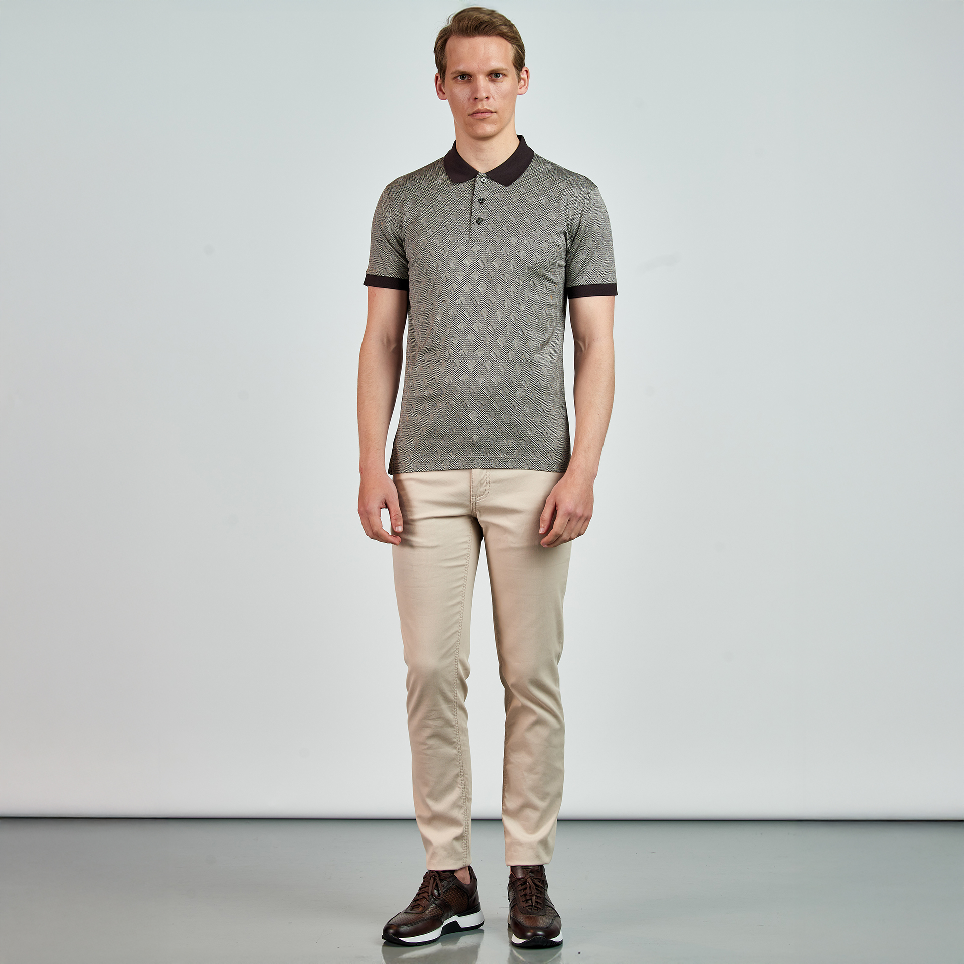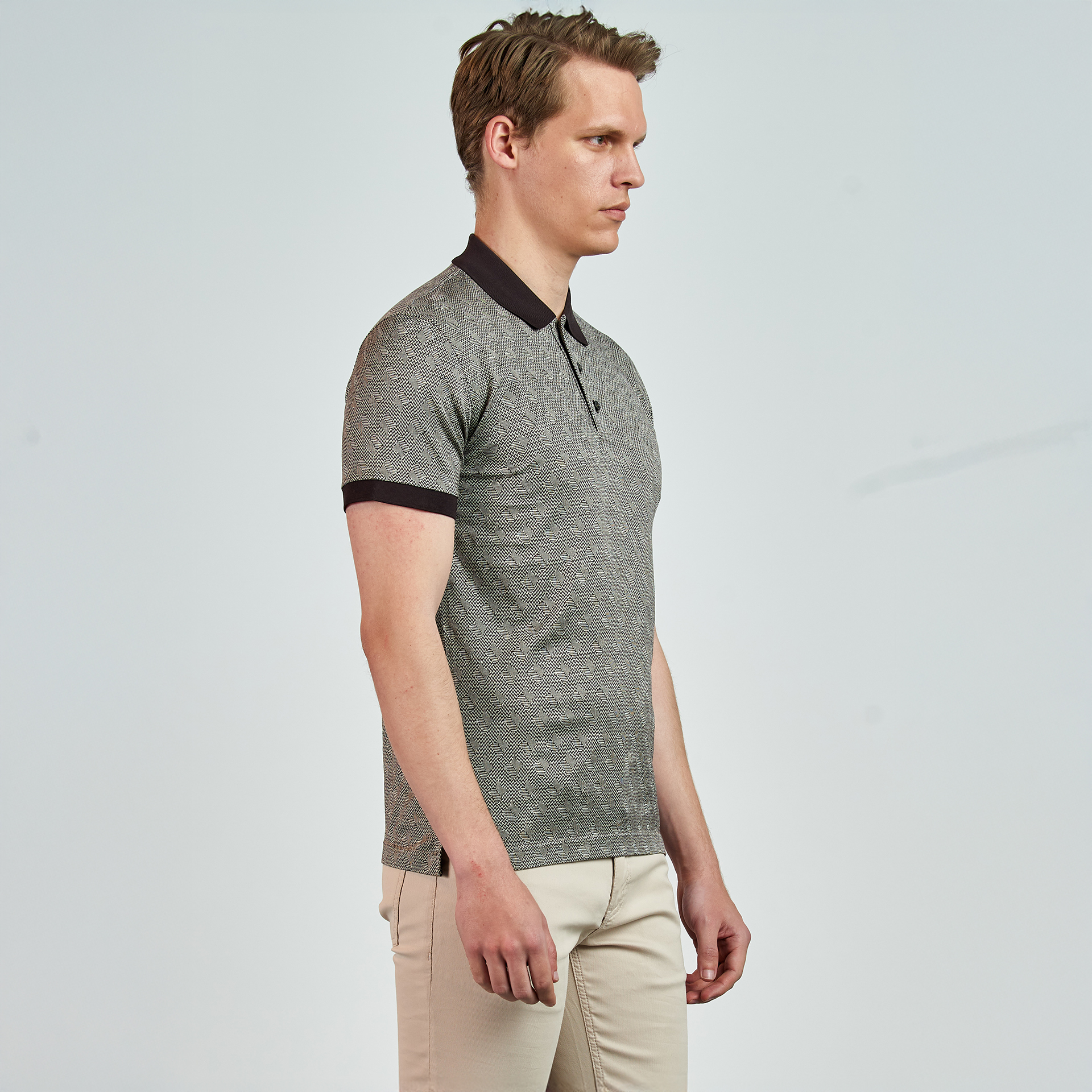 Polo yaka, düğme kapatmalı, çiçek desenli, renk detaylı, T-shirt