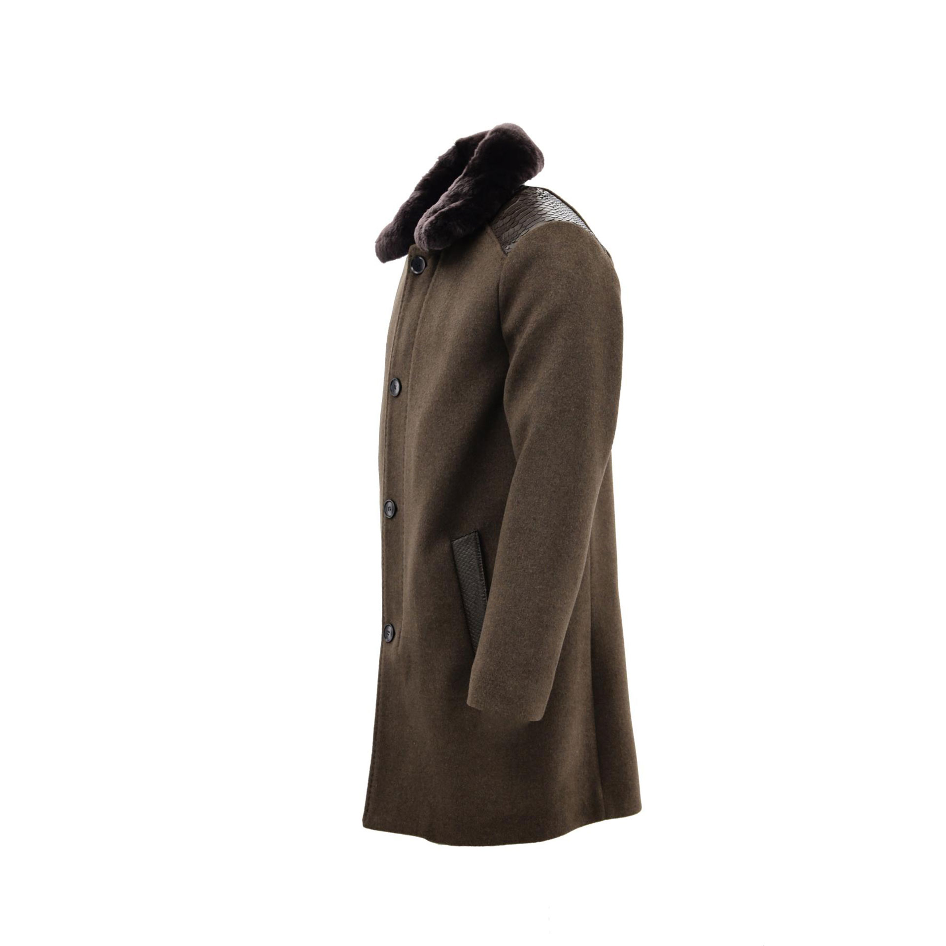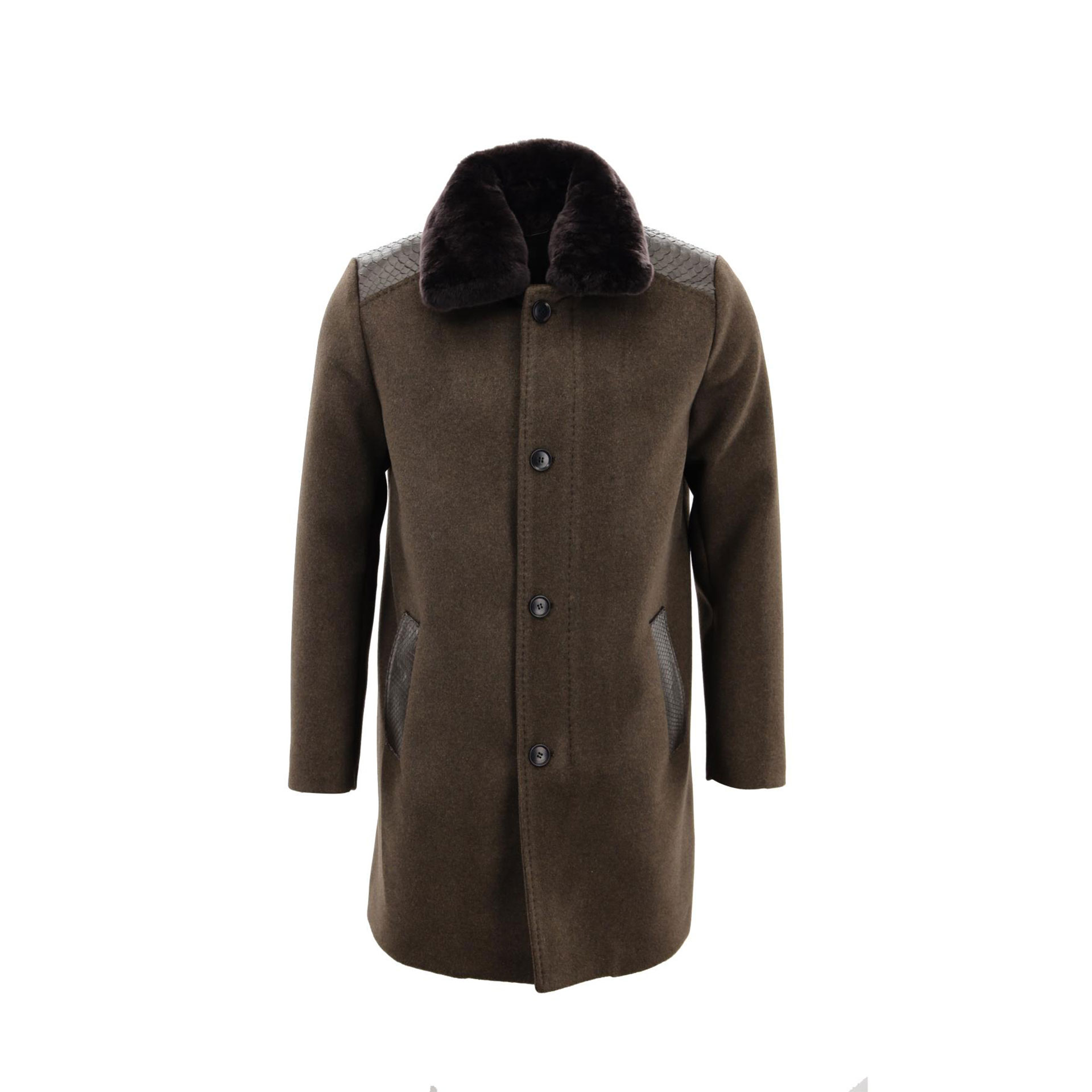 • Ürün Özellikleri : Yüzde yün dokusuyla öne çıkan bu mont, omuz ve cep filetolarında zarif deri detaylarıyla dikkat çeker. Yaka kısmındaki kürk ve ön taraftaki düğme kapaması, şıklığı ve kullanım kolaylığını bir araya getirir.