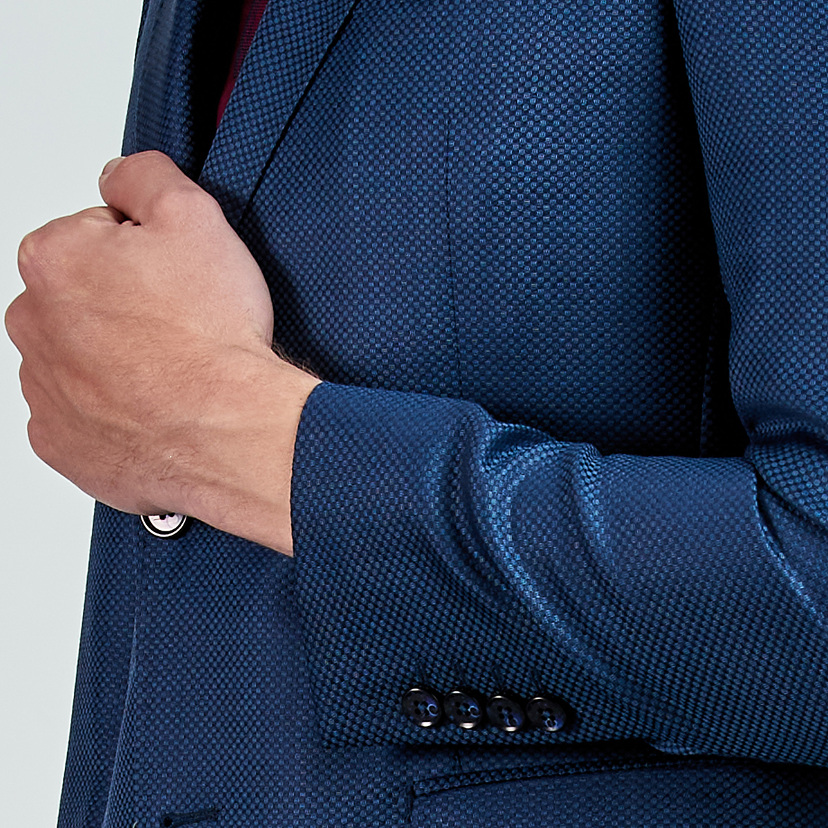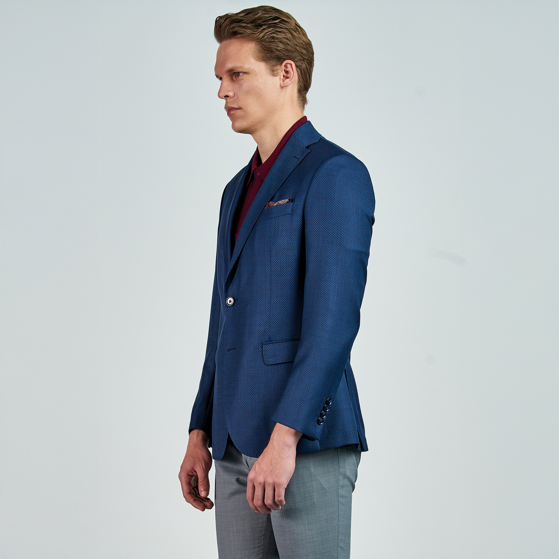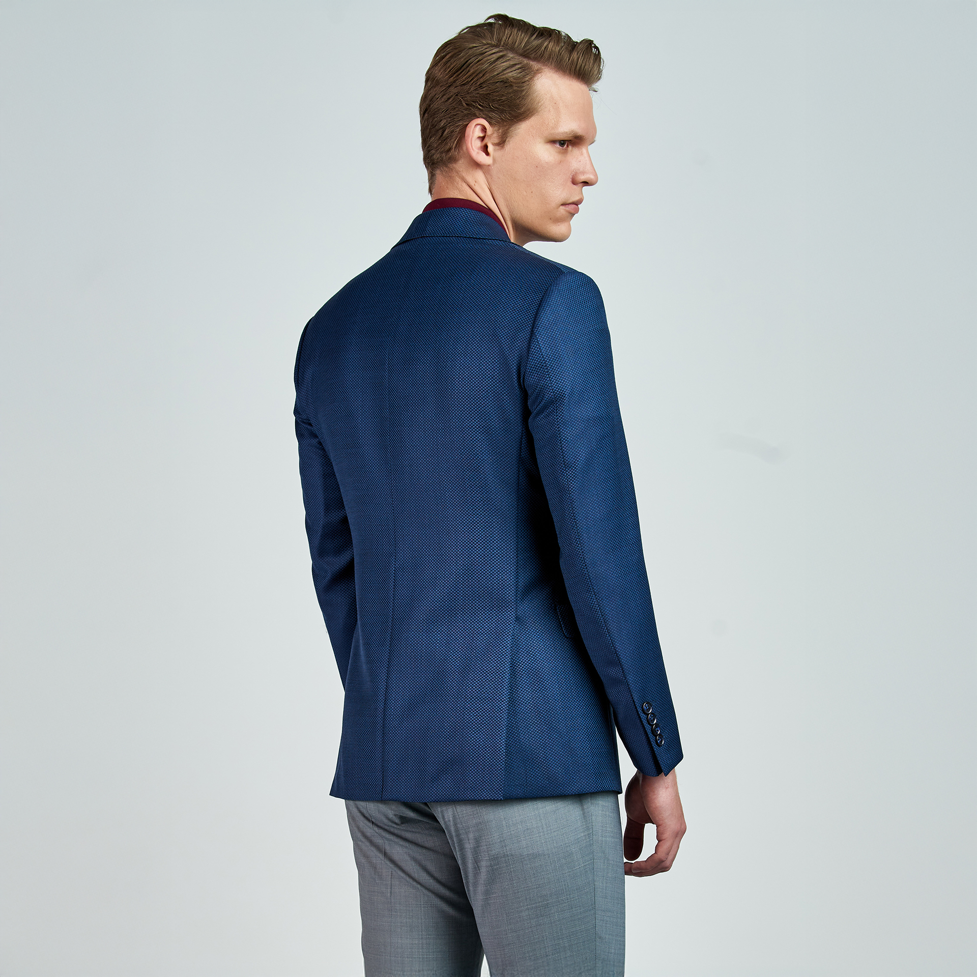 Product features: Düz renk, dokulu, silik kareli Ceket. Mono yaka, punto dikişli, düğme kapatmalı, çift yırtmaçlı, 3 adet dış cepli, 3 adet iç cepli.