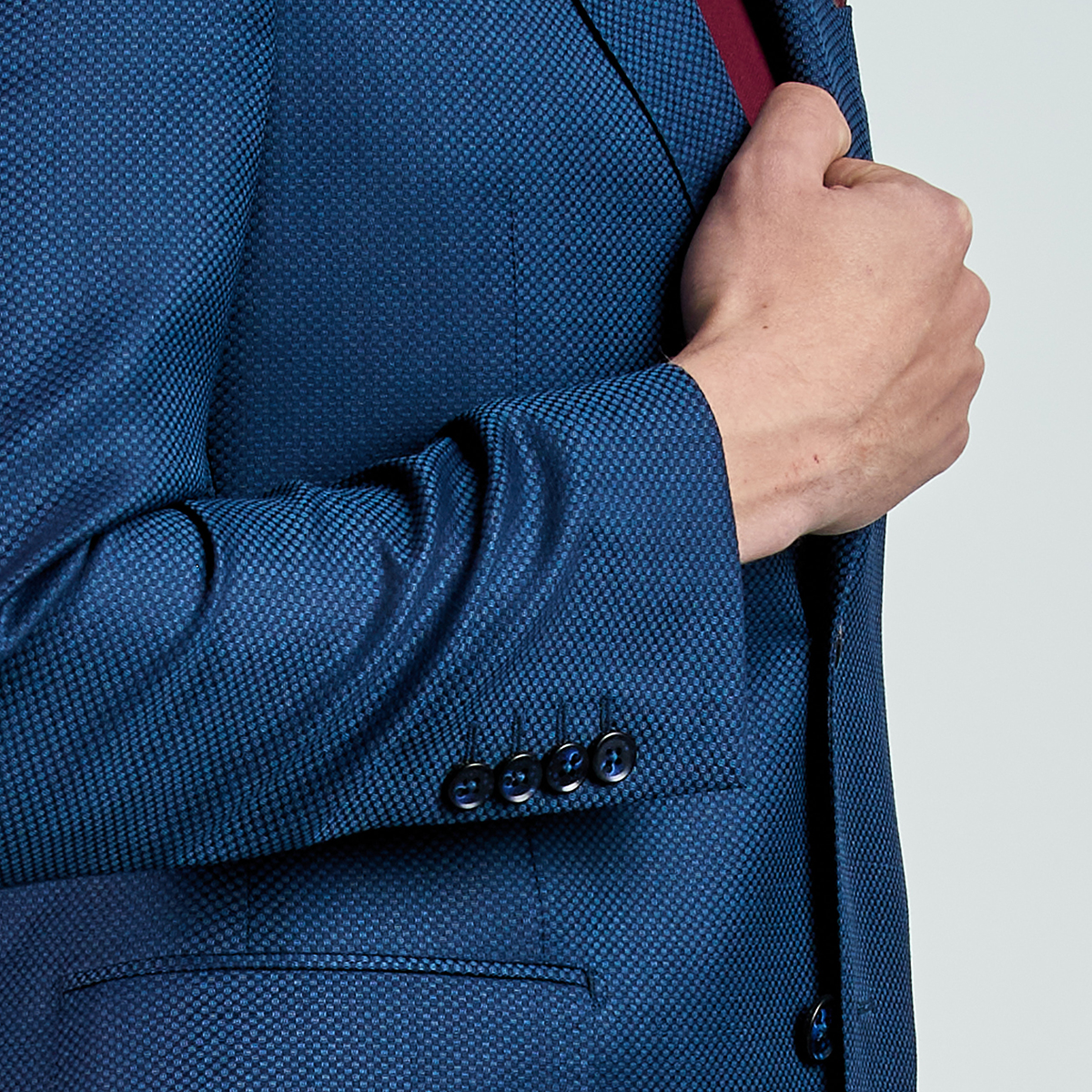 Product features: Düz renk, dokulu, kareli Ceket. Mono yaka, punto dikişli, düğme kapatmalı, çift yırtmaçlı, 3 adet dış cepli, 3 adet iç cepli.