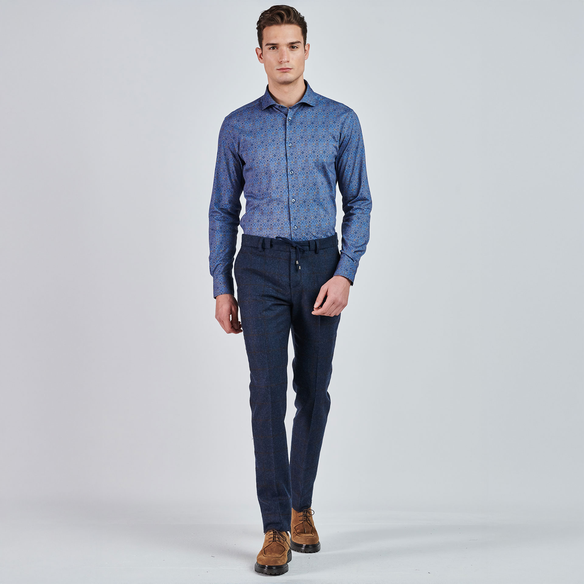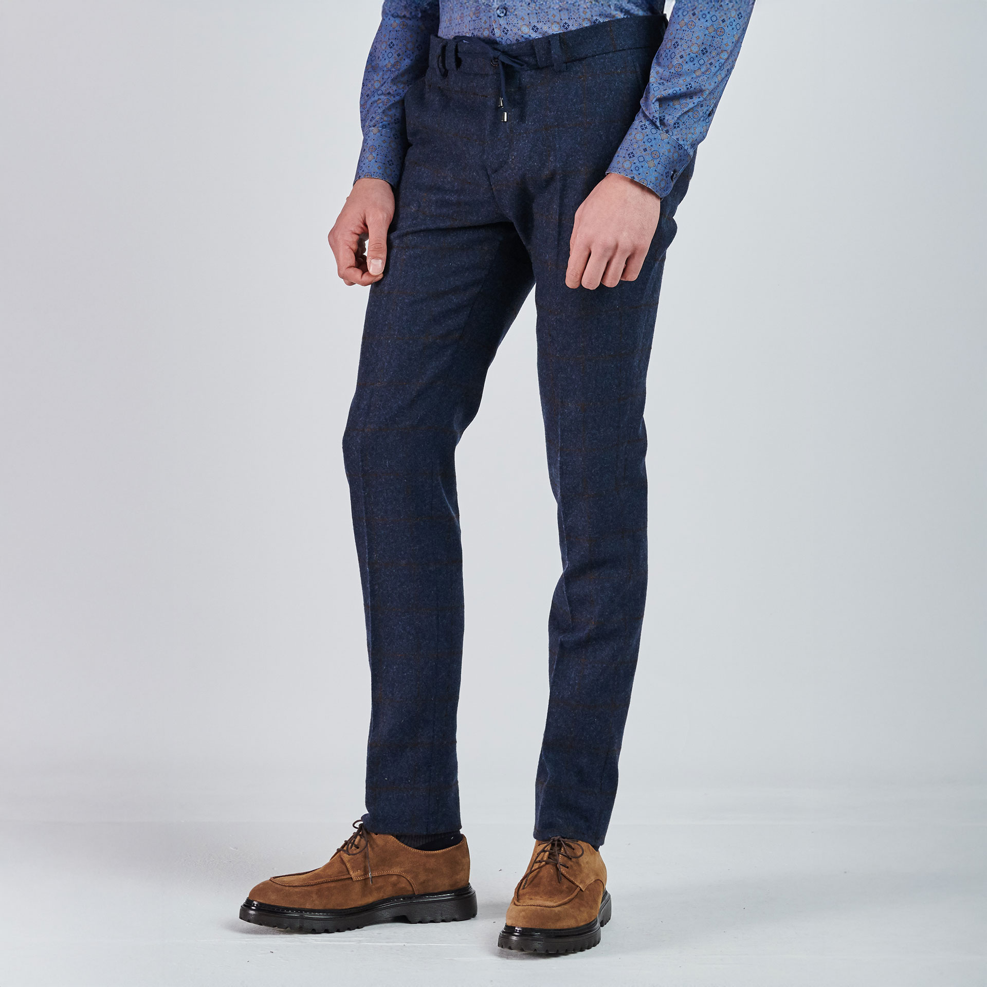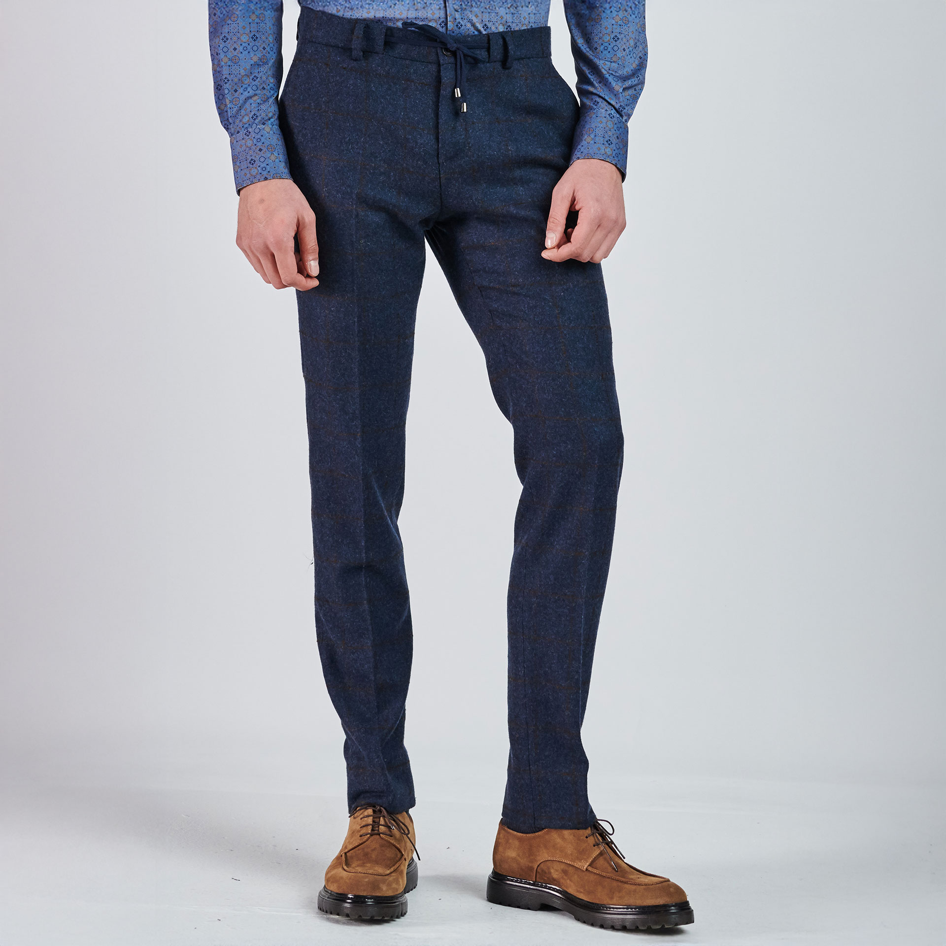 • Ürün Özellikleri : Normal bel, patletle gizlenen fermuar kapatmalı, boru paça, dört adet cepli, düğmeli kemer ipli.
