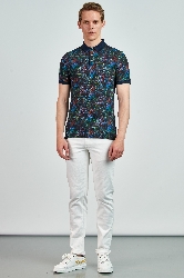 Polo yaka, düğme kapatmalı, desenli T-Shirt.